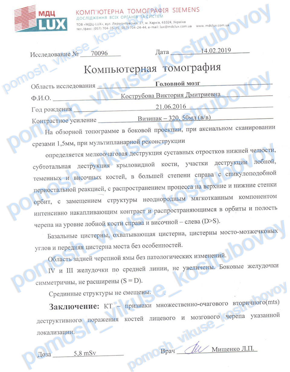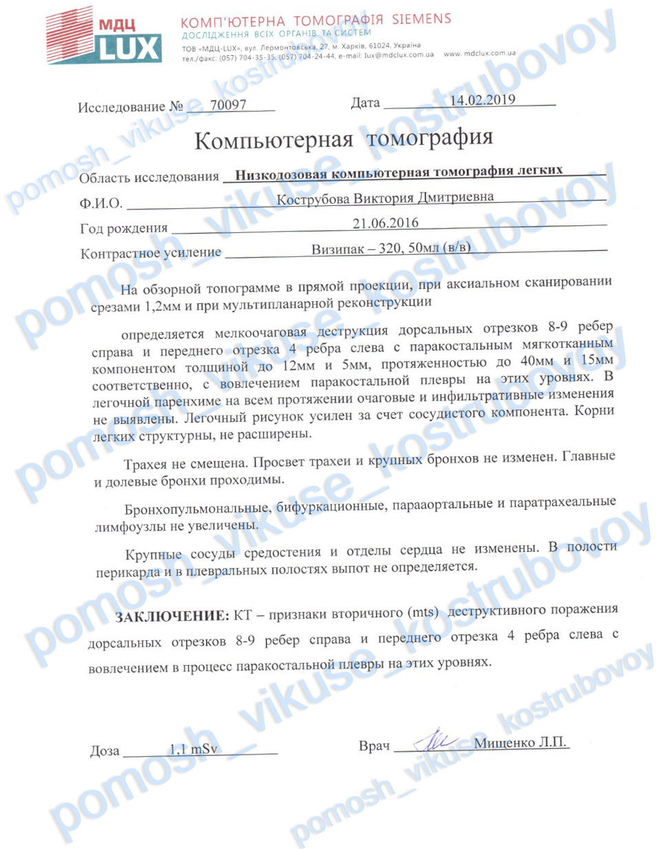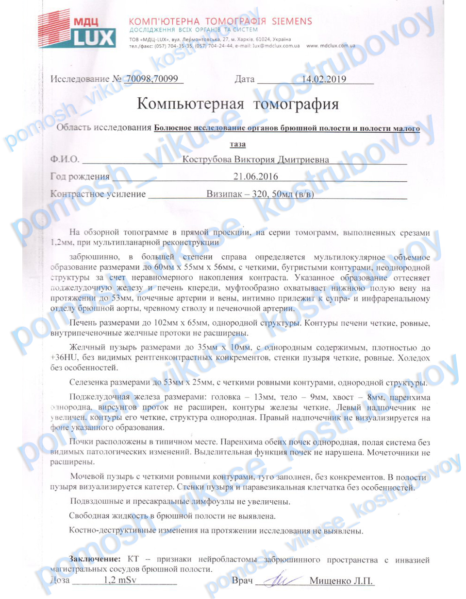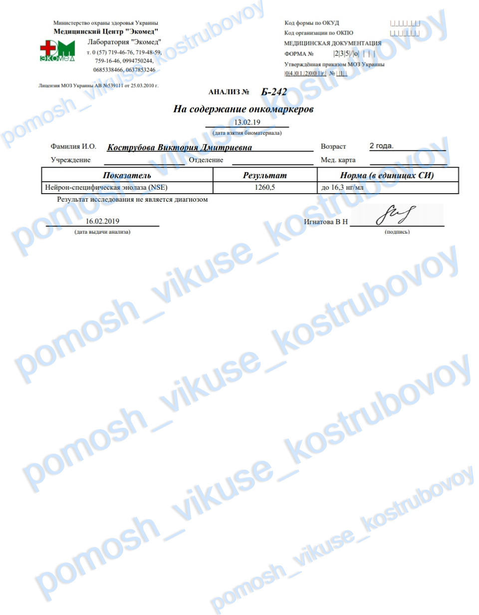 Здравствуйте, меня зовут Кострубова Татьяна, я мама маленького ангела, Кострубовой Виктории.Так случилось, что 14.02.2019 года у моей дочери обнаружили РАК ( нейбробластома 4 стадии), с этой минуты моя жизнь разделилась на ДО и После. Нам очень важна и нужна Ваша помощь. Я умоляю ВСЕХ, кто читает мое обращение, помочь нам справиться с этой бедой. Мое сердце переполняет боль и горе!